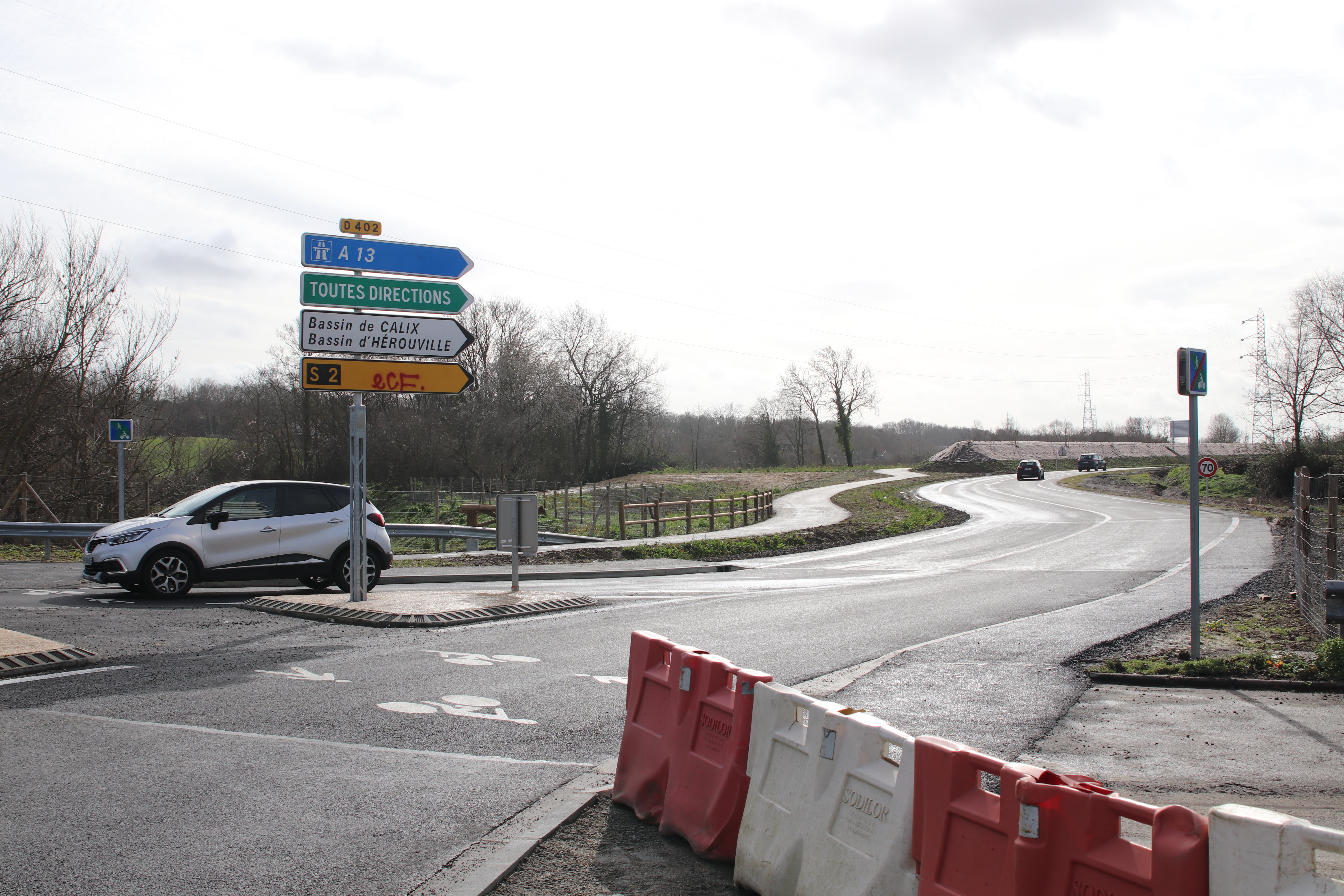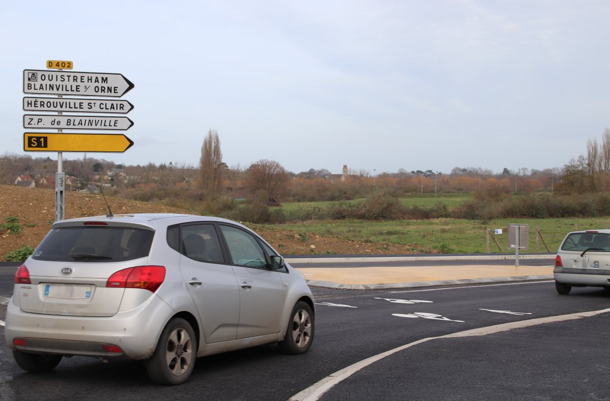 • Une première section, portée par le Département du Calvados, entre le rond-point Normandial et la RD 402 sur la presqu’île (mise en service en juillet 2020).