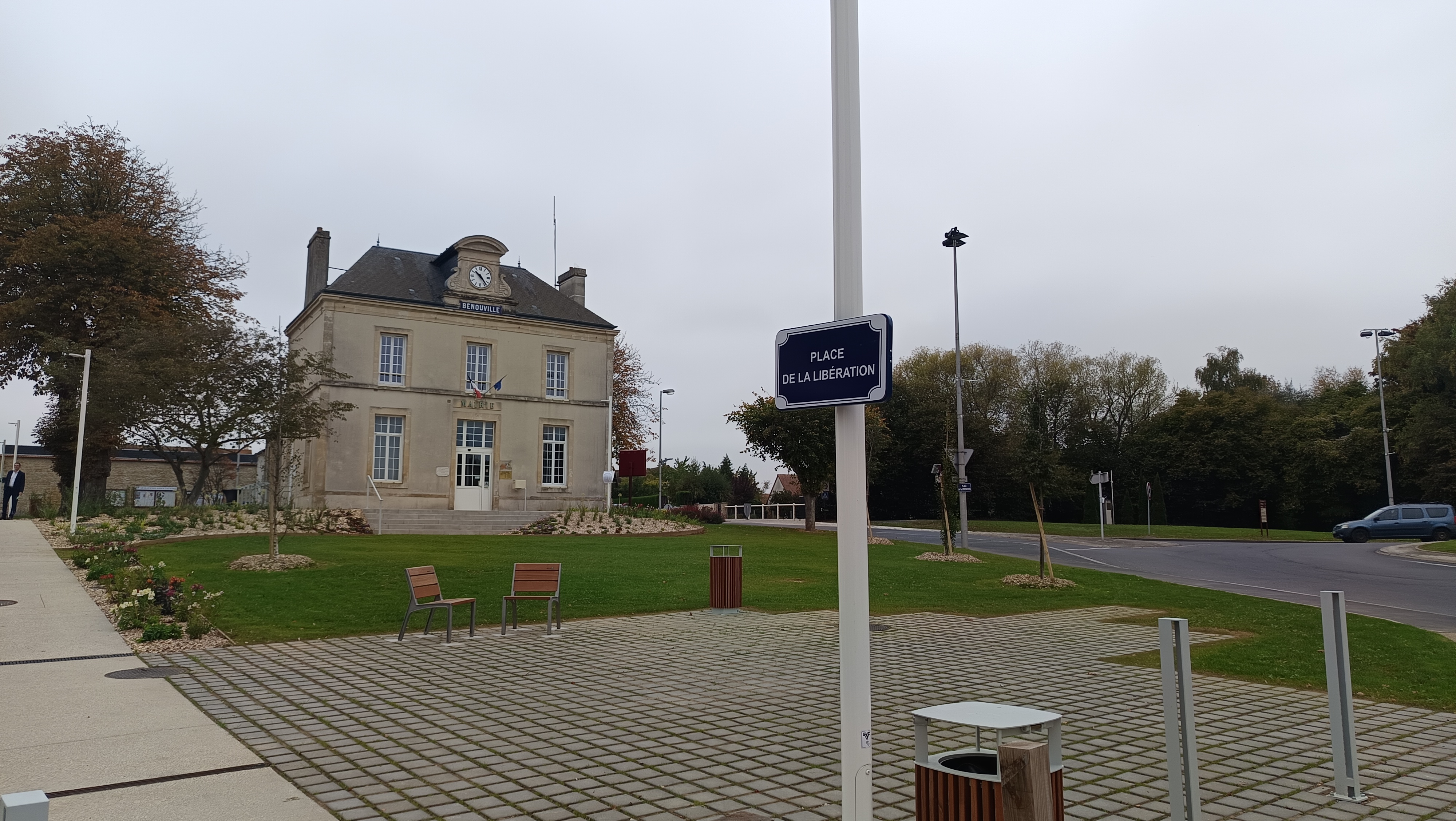 Les travaux d’aménagement de la place de la Libération, située devant la mairie de Bénouville, sont terminés. Cet espace public, à l’entrée de la zone mémorielle du Débarquement, est désormais accessible à tous.